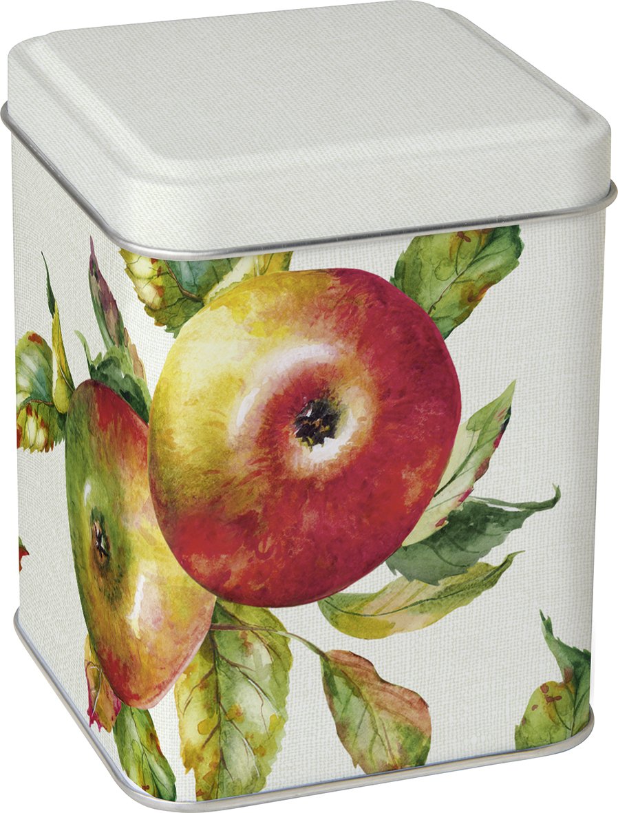 Dekorative Teedose mit Apfelmotiv, geeignet für ca. 100g Tee.