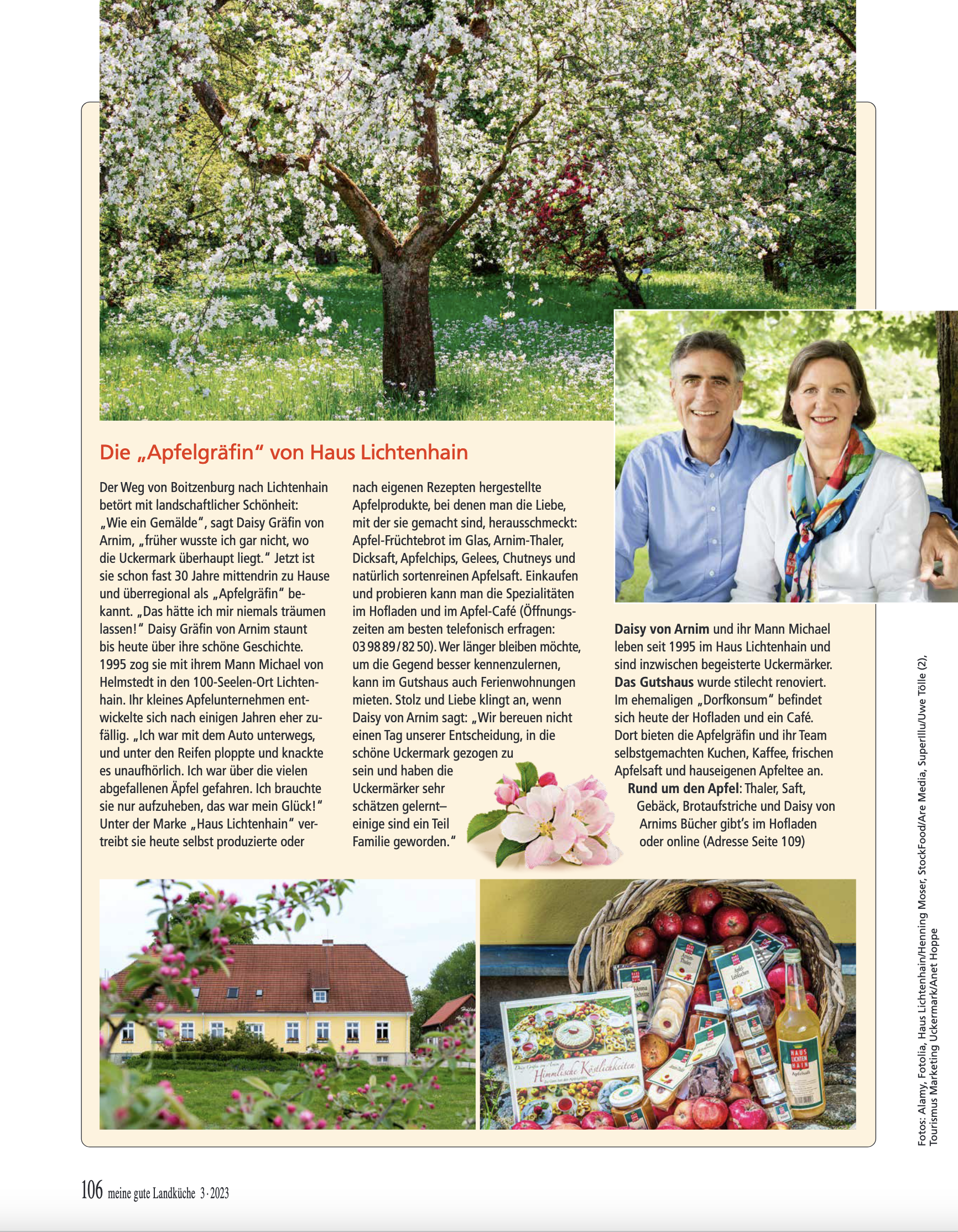 Ohne das Internet und die Lieferdienste wären wir hier ziemlich abgeschnitten, aber so sind wir mit Ihnen allen auf das beste verbunden und konnten vor 15 Jahren ein Unternehmen gründen, was sich auf die Verarbeitung des Apfels in Form von Delikatessen spezialisiert hat. Der Apfel ist eine köstliche Grundlage für viele Rezepte und Äpfel haben wir hier meistens mehr als genug. In den Gärten und an den einsamen Wegen in der Uckermark.